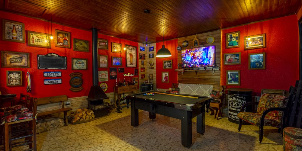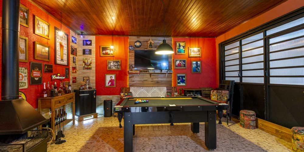 Adentrando na cozinha, uma porta discreta leva você ao verdadeiro coração desta casa: o seu próprio “boteco” particular. Este espaço acolhedor e animado, repleto de personalidade, está equipado com tudo que você precisa para se tornar o anfitrião perfeito. Sinta o calor da lareira, sempre pronta para aquecer as noites mais frias, enquanto a churrasqueira e o forno de pizza aguardam pacientemente para dar vida aos seus pratos favoritos. Imagine-se recebendo amigos e familiares nesse ambiente descontraído, compartilhando risadas, histórias e memórias ao redor de uma mesa cheia de delícias. Este espaço, desenhado para convívio e diversão, convida todos a relaxar, desfrutar e se sentir em casa.