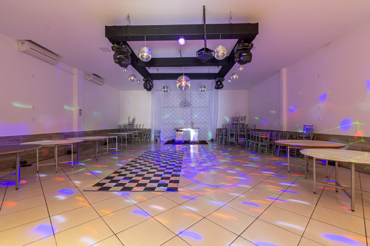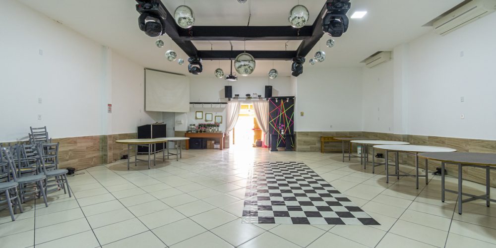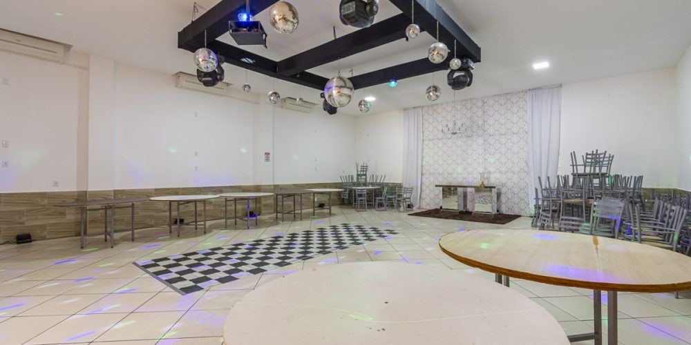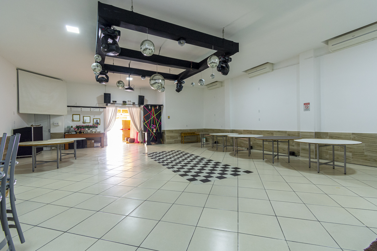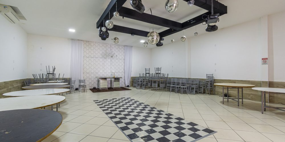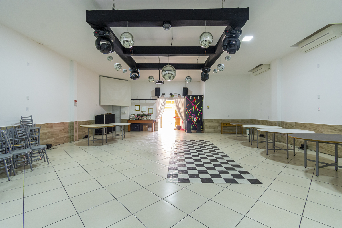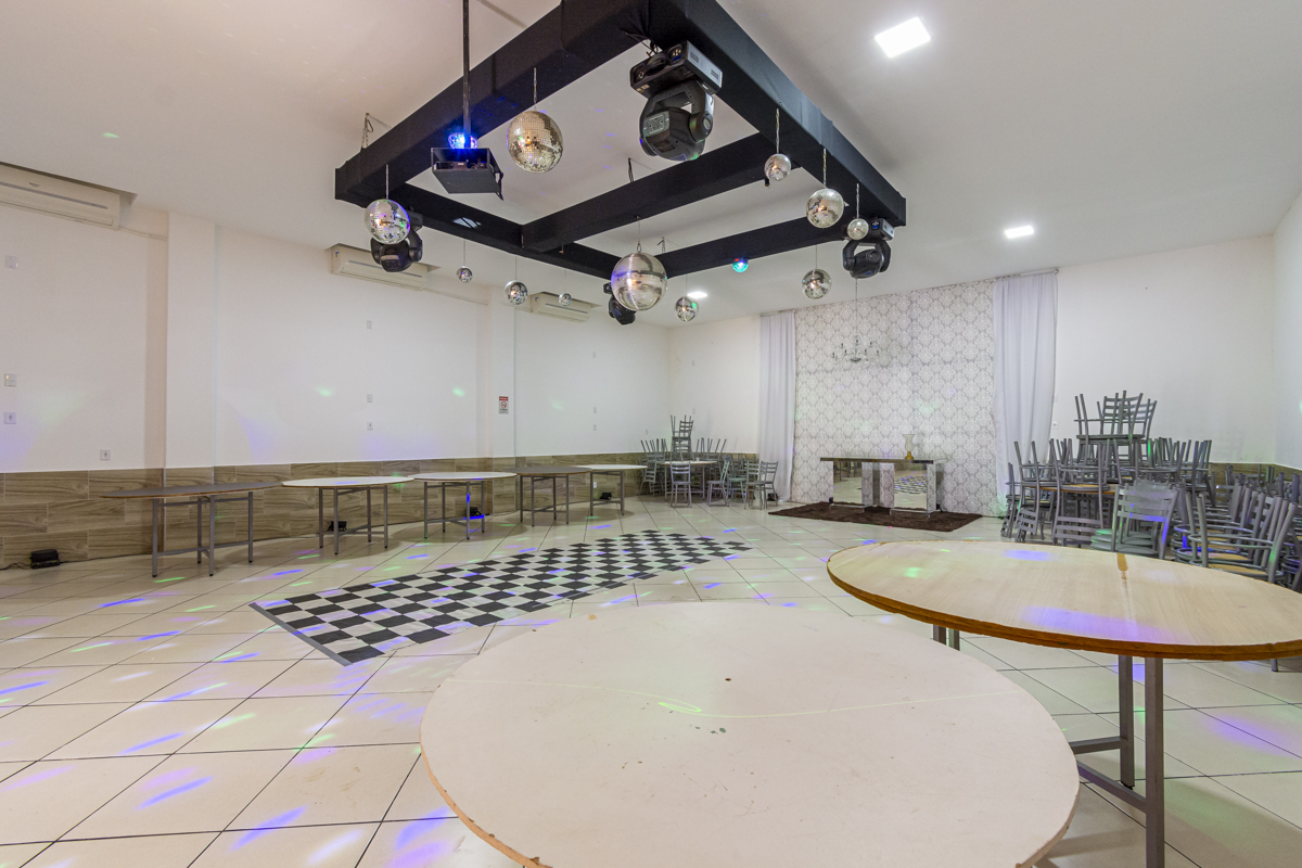 A infraestrutura do prédio inclui a possibilidade de negociação dos equipamentos necessários para a realização de festas e incluindo equipamentos de DJ (Disk Jockey), para oferecer uma experiência musical completa e animada durante os eventos. A parte superior do prédio é um espaço adicional de 70m², que atualmente já está alugado. Esse espaço pode ser utilizado para diferentes propósitos comerciais, proporcionando uma fonte adicional de renda.